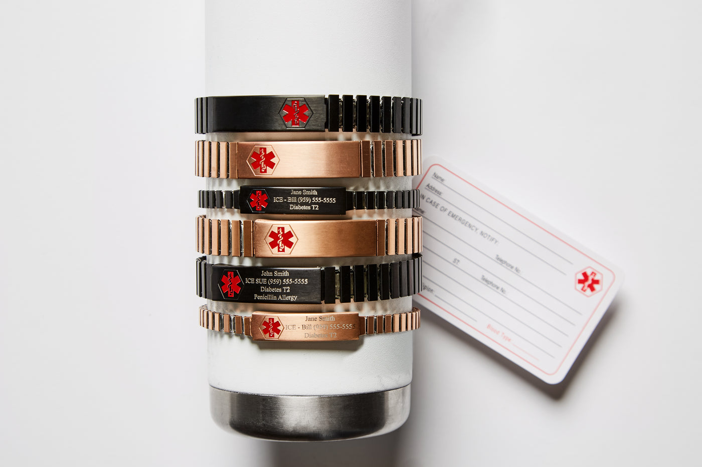 Designed specifically for those with health conditions by having all medical details engraved on the plaque to alert responders in the event of an emergency.